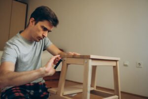 The construction process begins by cutting wooden boards for the tabletop, legs, and storage section. Proper measurements help ensure the table fits well beside the bed. Once the parts are assembled, the wood should be sanded to create a smooth surface. This step improves the durability and appearance of the furniture.