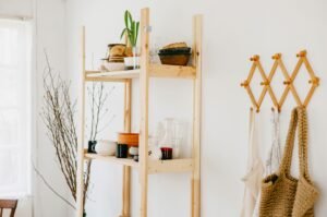 A wooden ladder shelf is a stylish and functional furniture idea that works well in modern homes. The ladder design leans against the wall and provides several shelves for storing decorative items. This structure saves floor space while still offering useful storage. Ladder shelves are commonly used to display books, plants, and small décor objects. Their open design keeps the room looking light and uncluttered. This makes them ideal for apartments or small living spaces. workspace that improves productivity and focus.