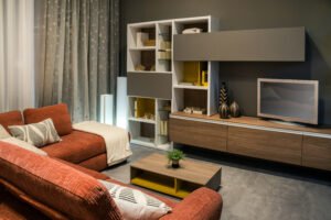 Comfortable seating furniture such as sofas and armchairs is essential in a living room because they provide relaxation and support for daily use. Arranging furniture around a coffee table helps create a cozy conversation area where people can sit together and interact easily. Many modern living rooms use sectional sofas or lounge chairs to maximize seating space. Adding cushions and soft fabrics also increases comfort while improving the visual appeal of the room. The right furniture arrangement can make the space feel more organized and inviting.