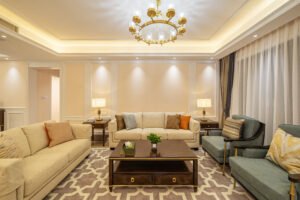 Decorating walls with artwork, shelves, or mirrors can dramatically enhance the room’s style. Wall décor creates visual interest and helps personalize the living space. Large framed prints or gallery walls are popular choices in modern homes. These design elements help create a balanced and attractive interior environment.